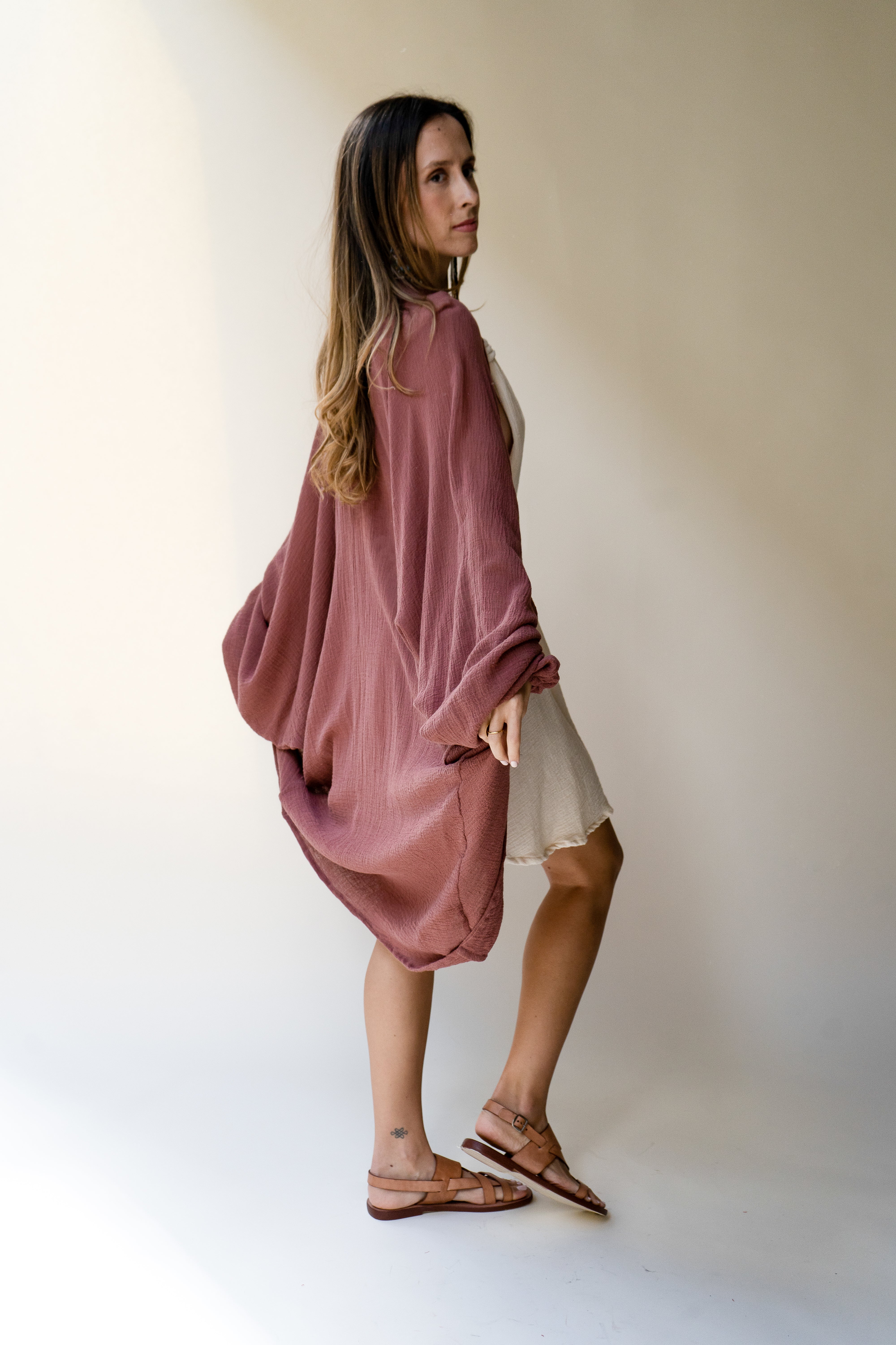 Lightweight and breathable, the Isabelle is made from baby-soft cotton that feels calming on the skin and moves beautifully with the body. Wear it open, belted, or layered — this is the piece you reach for again and again.